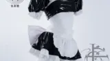 クロップ丈のボレロとタイ結びのブラトップ、ローライズショーツで構成されたセットです。ボレロは前身頃に対照パネルをあしらい、裾にフリンジが付いているのが特徴で、袖は膨らみのあるバルーンスリーブ、手首はリブで絞られています。ブラトップはフロントで結ぶデザインによりV字の抜けを生み、ショーツは極端に短いカットでウエスト周りに金属バックル付きのベルトとハトメが配されています。星形の刺繍アップリケが視線を引く装飾要素で、素材は薄手で伸縮性のある化繊系のスポーティな仕立てに見えます。ステージやパフォーマンス向けに身体のラインを強調する設計です。