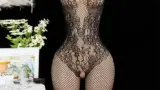 繊細な花柄レースを全面に使ったホルターネックのボディスーツです。深く切り込んだVラインは縁がスカラップ状に仕上げられ、胸元に視線を誘導します。生地は網目の細かいシアーレースで透け感が強く、胴まわりに入ったウエストシームでメリハリを出しています。サイドは大きく開き、背中側はバックレスに近い造りで、画像にはダブルストラップやホックで調整するデザインも見られます。ヒップはタンガ/ハイレグ寄りのカットで脚長に見せる効果があります。パッドやワイヤーは見えずナチュラルなフィット感重視の作りなので、サポート性よりも装飾性とシルエット演出を優先したい方向けです。白・赤・黒などカラー展開が確認でき、ランジェリー兼インナーとしても使いやすいデザインです。