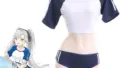 この衣装はスポーティーな雰囲気を持つ体操服系コスチュームで、クロップ丈トップとローライズショーツの2点セットとしてまとまっています。トップはラグラン切替の半袖で、丸首ネックと裾のゴム入りにより胸元とウエスト周りを程よく強調するタイトめのシルエットを作ります。ショーツは腰骨に沿う低めのウエストで、サイドに入った並列ラインがアクセントになりヒップラインをきれいに見せます。素材は薄手で伸縮性のある水着ライクな生地感で、わずかな光沢と滑らかな肌触りが特徴です。装飾は袖のライン、ショーツのライン、ロールアップされた袖口といったスポーティーなディテールに絞られており、余計な付属はほとんどないためコーディネートしやすい設計です。この衣装は撮影やコスプレイベント、屋内ポートレート、テーマパーティーなどで活躍し、動きやすさと程よい露出で健康的かつやや挑発的な印象を演出したいシーンに適しています。ニーハイやスニーカー、ヘアリボンでアレンジすればよりスポーティーな完成度が高まります。