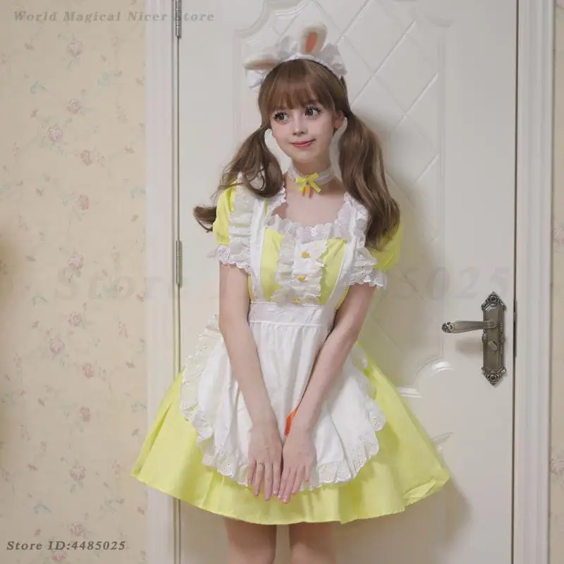 商品名 | イエローメイドドレス 日本のメイドコスプレ かわいいロリータイブニングパーティードレス クラシックエプロンメイドロールプレイコスチューム プラスサイズ 5XL ガウン |