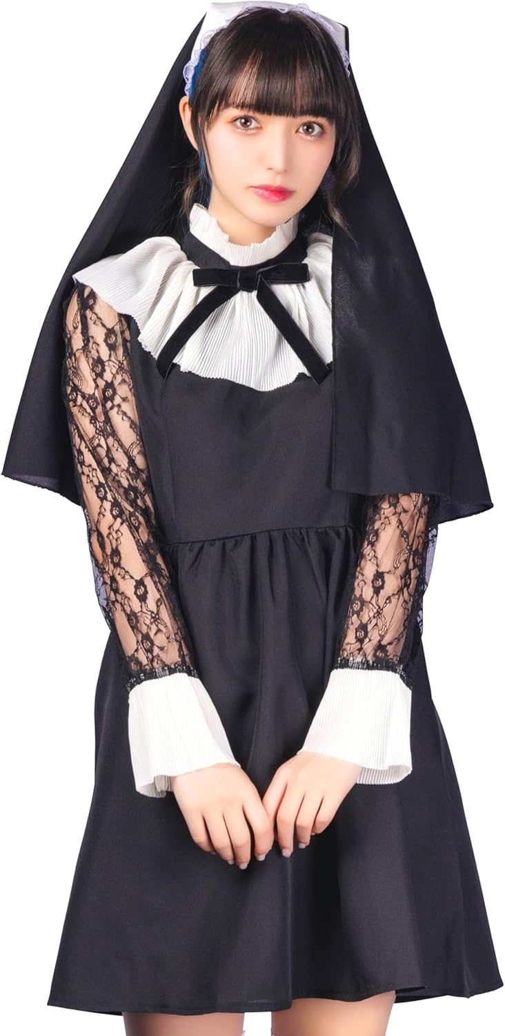 - プリーツ生地の襟がケープのように広がったシスターコスチューム。