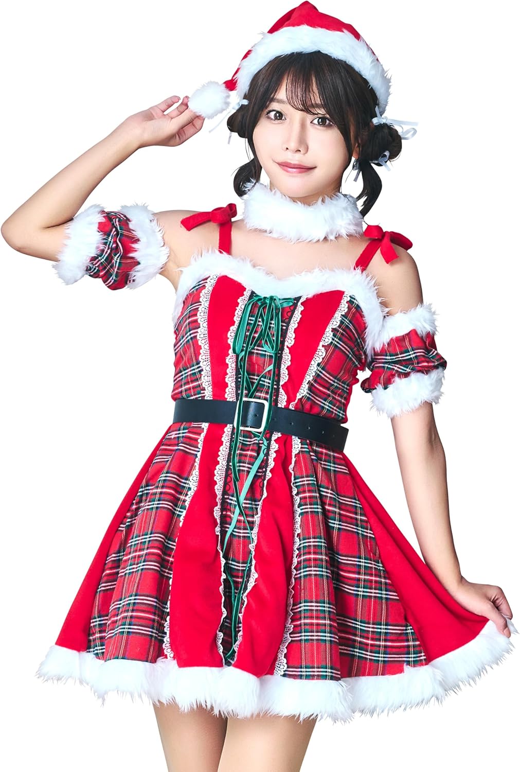 クリアストーン(Clearstone) コスプレ クリスマス チェックフリルレースアップサンタ レディース レッド