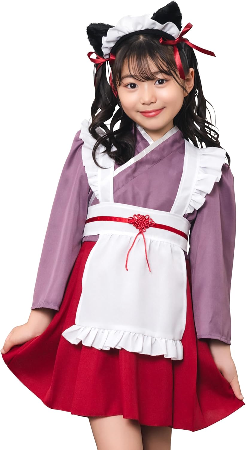 • 大正ロマン風のデザインを取り入れた、袴風ワンピースの和風メイドコスチューム。