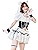 • 落ち着いた紫のトップスと赤いスカートに白いフリルエプロンを合わせた、上品でクラシカルなデザインです。