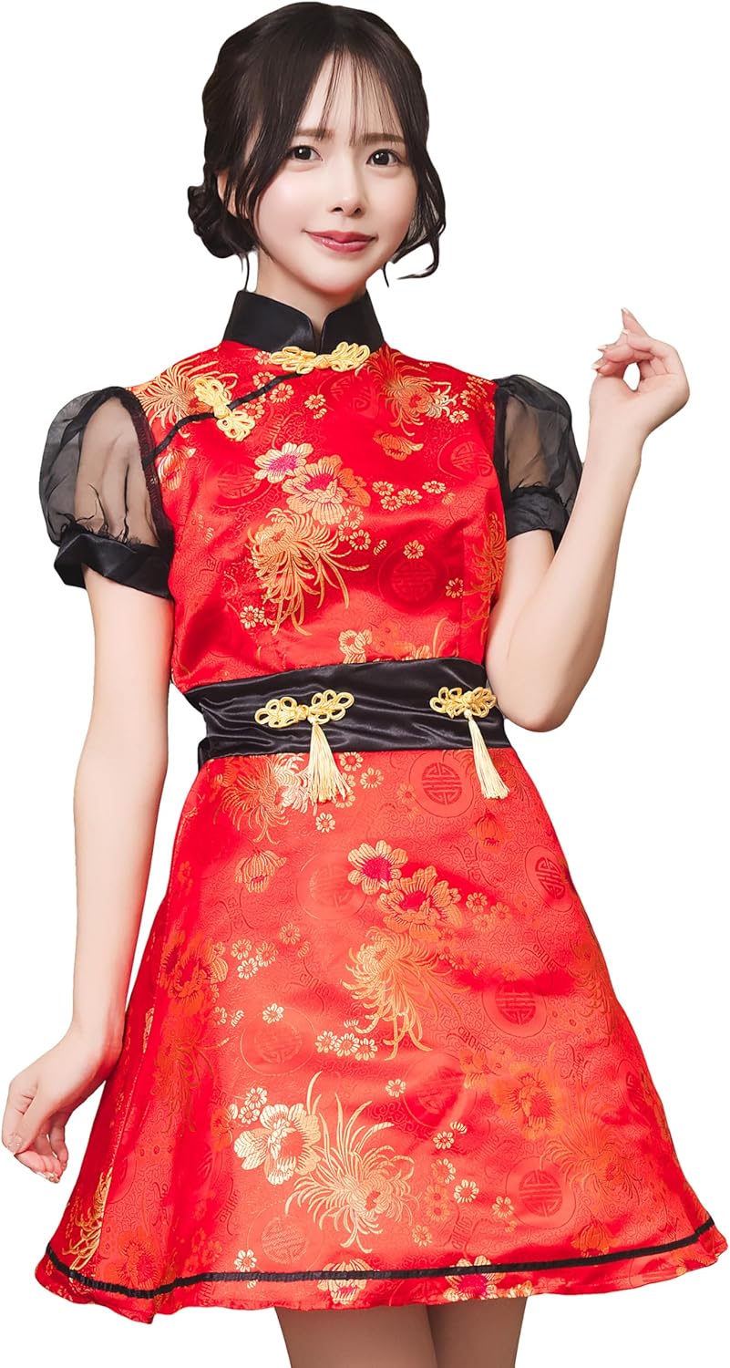 - 軽やかなシースルーのパフスリーブが魅力的なチャイナテイストのワンピースコスチューム。