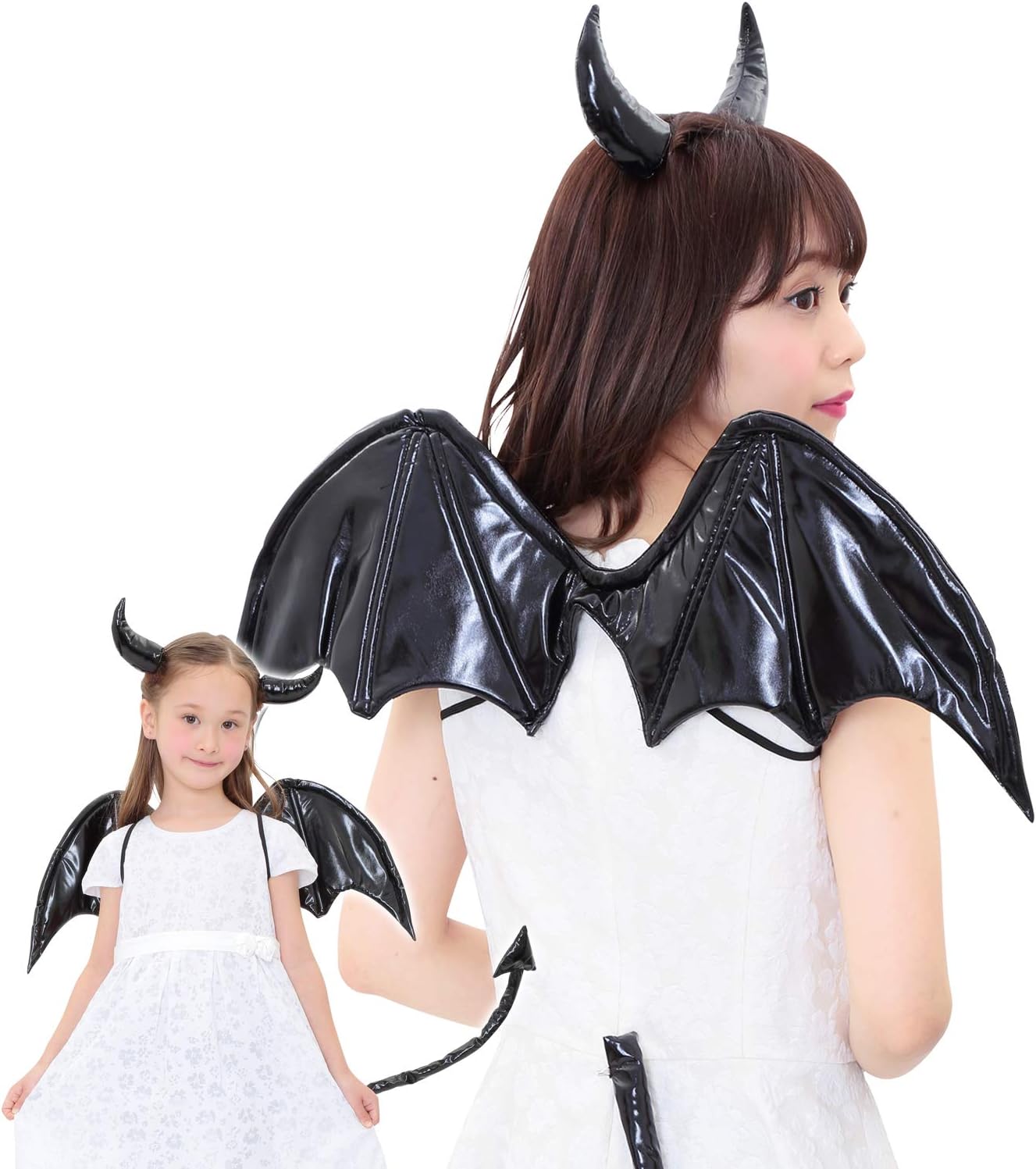 もっと大きい羽のほうがいいかな?と思ったが、皆さんのコメントを見たら「トイレの時邪魔だった」とあったのでこちらに。羽の大きさは丁度よくトイレの邪魔になりません(笑)ただ、角(耳?)はパッチンの方向が違うので、髪に固定されにくくすぐ取れます。なので100均のカチューシャに貼り付けました。尻尾も可愛く、セットとしては安価でいい商品だと思います。