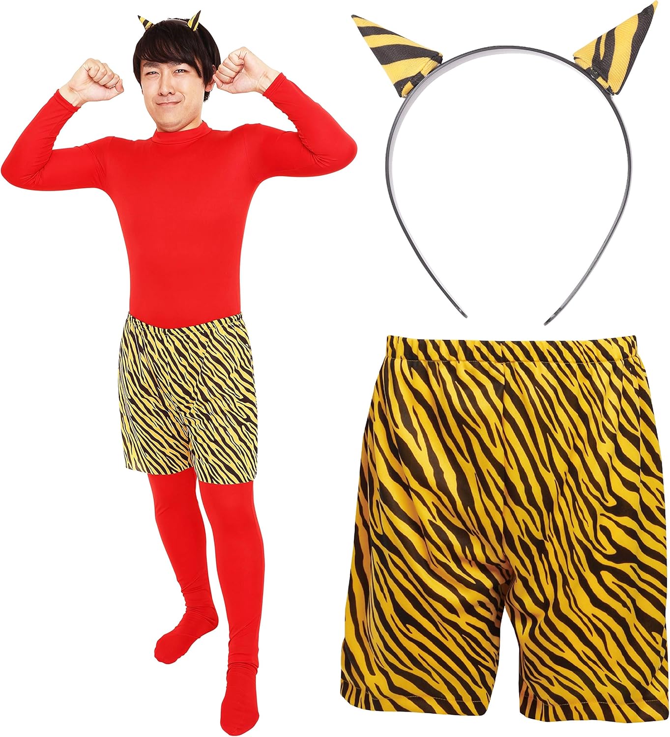 - 男女兼用のトラ柄パンツ&角カチューシャ