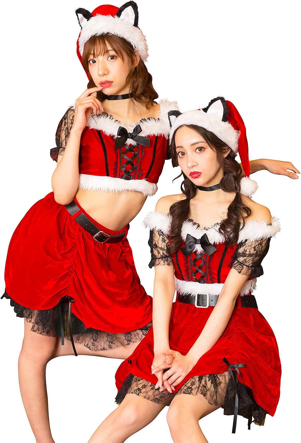 クリアストーン(Clearstone) コフレシャルム コスプレ クリスマス ブラックレースキャットサンタ レディース レッド