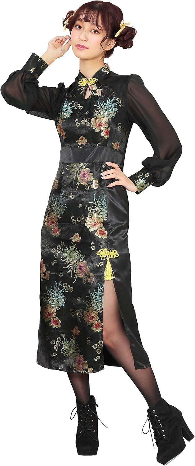 - 体型カバーも出来る長袖&ロング丈のチャイナコスチューム。