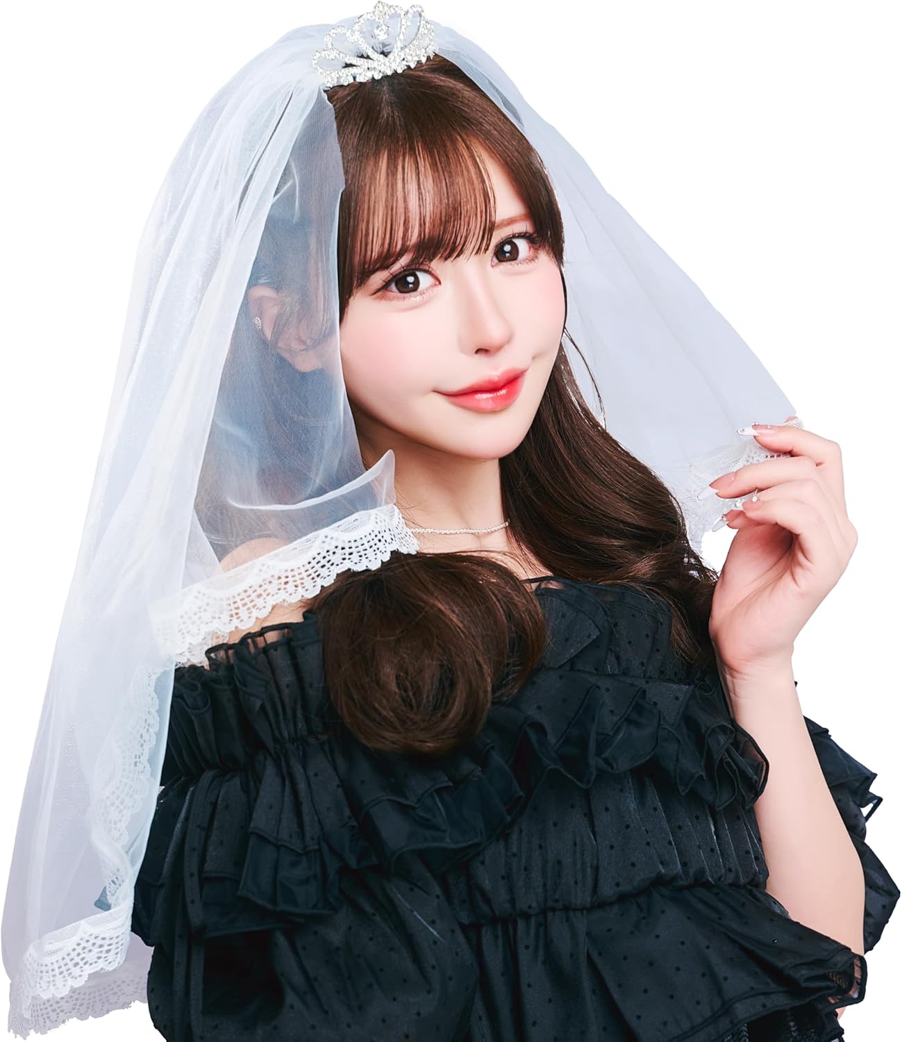 - 特別な日を華やかに演出する、ベール付きティアラ。
