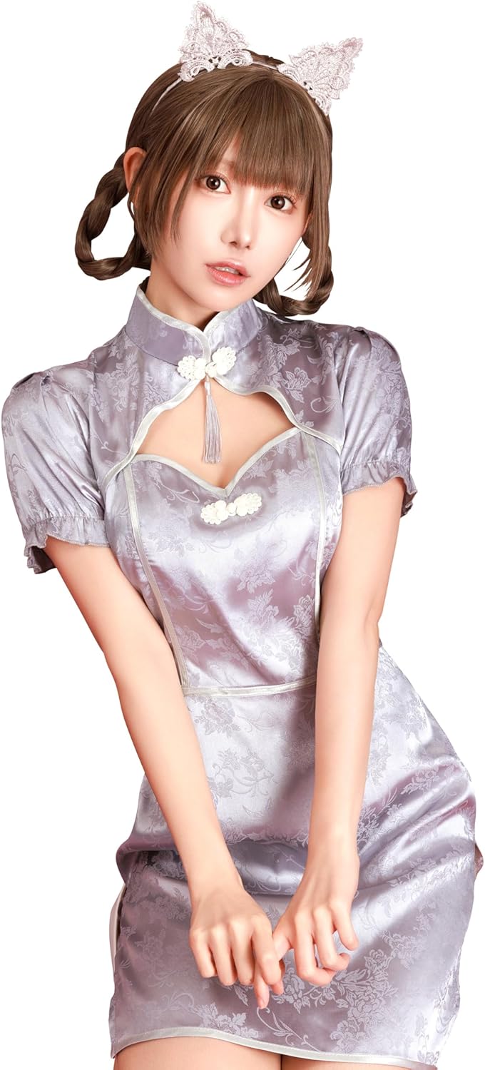 - 光沢のあるジャガード生地を使ったチャイナドレスに豪華な猫耳カチューシャを合わせました。
