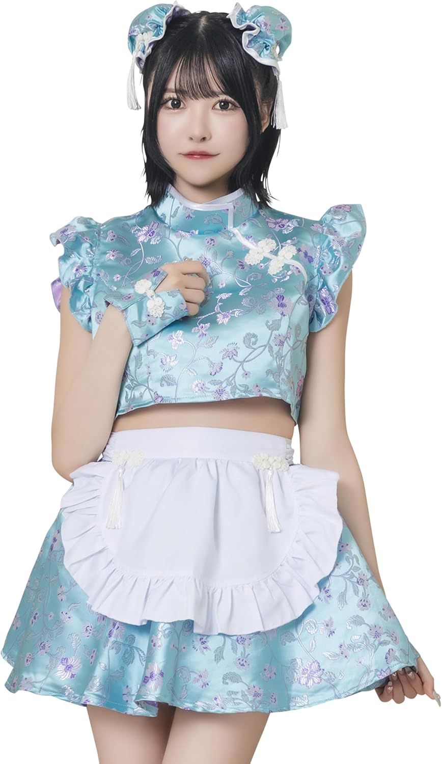 - 水色チャイナメイドは、光沢が綺麗な水色のチャイナ生地。