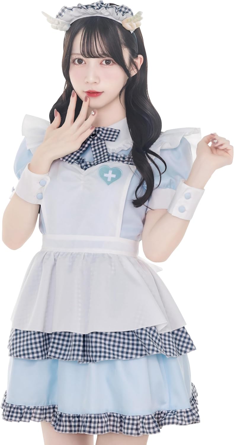 - セット内容:カチューシャ、ワンピース、エプロン、リボン、カフス