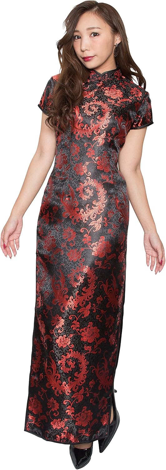 クリアストーン(Clearstone) ロイヤルチャイナ コスプレ ハロウィン チャイナドレス ロング 羽/黒 レディース S ブラック