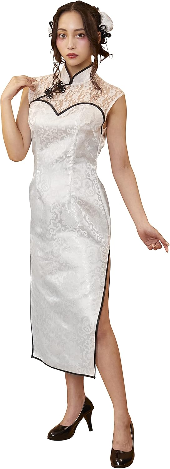 クリアストーン(Clearstone) GLOWHOLIC コスプレ ハロウィン ロングレースチャイナ レディース ホワイト