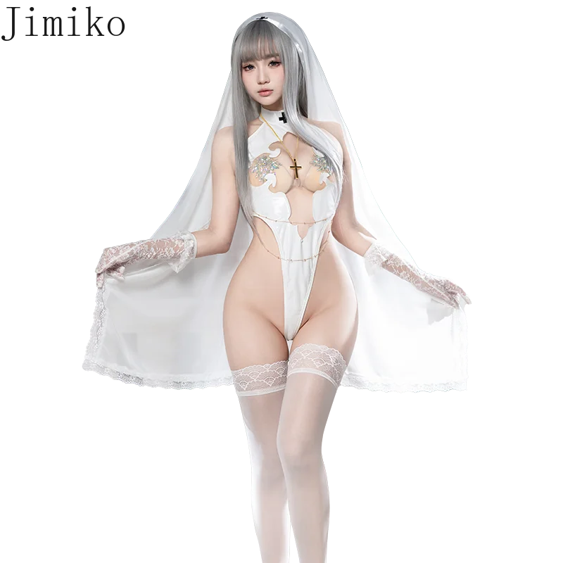 商品名 | Jimiko アニメ風の聖なる修道女コスプレ制服 レディース用 ボディスーツ ベール ブライダル ウェディング 18+ 白い天使の衣装 |