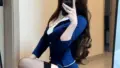 この衣装はスチュワーデスをイメージしたセクシーなコスチュームです。深いVカットのショートジャケットとウエスト位置で切れたクロップトップがデコルテを際立たせ、タイトなミニスカートは短めの丈で脚線美を強調します。半袖で肩まわりがすっきり見え、ゴールドの縁取りや斜めスリット、ボタン風の留め具がアクセントになっています。薄手で伸縮性のある素材は程よい光沢とフィット感があり、付属のミニ帽子とストライプスカーフで統一感が生まれます。撮影やコスプレイベント、パーティーで映えるデザインで、インナーやストッキングで表情を変えやすい一着です。