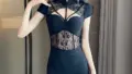 商品名 | セクシーなレトロスタンドカラー ボタン刺繍 ホロウアウト 改良ネットカラー ブロワップアラウンドスカートドレス レディース用 |