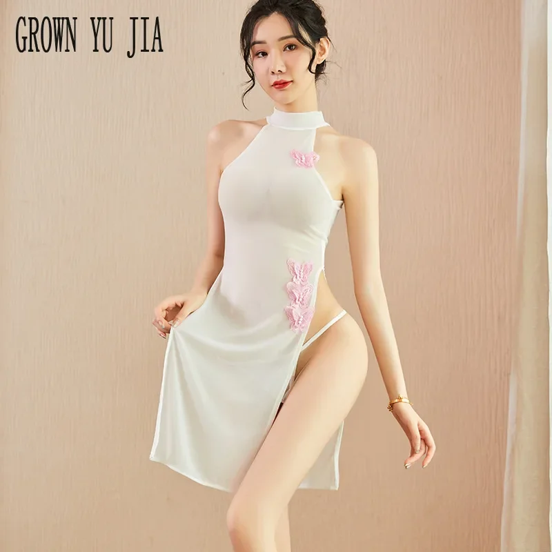 商品名 | セクシーな透け感メッシュヤーンのチャイナドレス 制服 エロティック レトロ バックレス チョンサム ドレス Tバック コスプレ衣装 ポルノ下着 スカート セックス |