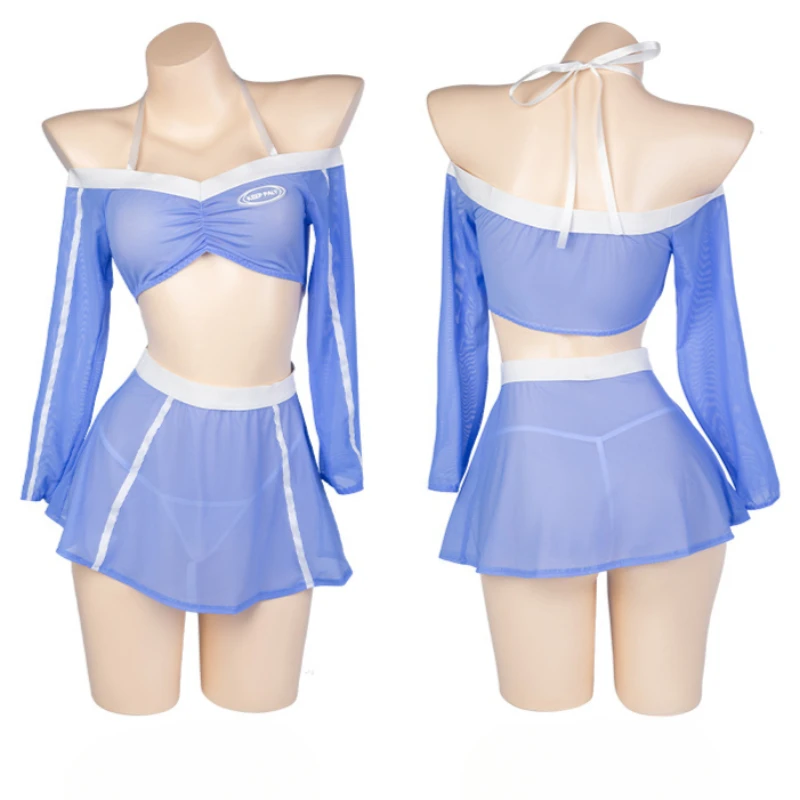 商品名 | セクシーシースルーハルタージムスーツ女性用水着ロールプレイ下着ストラップレスミニスカートセット女の子用水着チアリーダー衣装 |