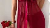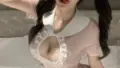 この衣装はピンクのナースコスチュームです。ミニ丈のワンピース形状で、丈は大腿中部〜上部まで届く短めの長さです。袖は半袖で腕の大部分が露出しています。ネックラインは立ち襟に近いデザインで、前立ては斜めにボタン留めされるアシンメトリー配置です。前面に深めのスリットが入り、股間〜太もも前面が露出する構造です。一方で胸元は襟と生地で覆われており上半身の露出は抑えられています。素材は薄手でやや光沢のある平滑な布地に見え、透け感は確認できません。装飾は同系色の丸ボタンが縦に並ぶ仕様と、十字を模した装飾が入ったナースキャップが付属しています。裾のスリットとボタン列が布と肌の境目を作り、視線を下方に誘導する構造です。パーティーや撮影、プライベートなコスプレ用途に適したデザインです。