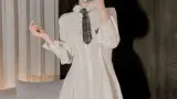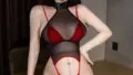 この衣装はミニ丈のプリーツスカートとレースカップのブラが組み合わさったスクール系のコスチュームです。スカートは深めのプリーツで動きに合わせてふんわり広がるミニ丈、トップは肩掛けストラップとクロスしたバックストラップで背中が大胆に露出するオープンバックのデザインです。ブラ部分は繊細なレース飾りと胸下で結ぶ大きなリボンが特徴で、ホルターネック風のチョーカーに小さなタイ状のリボンとチャームがアクセントになっています。光沢のあるリボン使いやしっかりとしたウエストベルト、太ももを飾るレース付ニーハイとの組み合わせでメリハリのあるシルエットを演出します。この衣装は撮影、イベント、パーティーやプライベートなコスプレシーンで映える華やかな一着です。