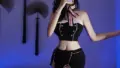この衣装は大胆にアレンジされた秘書風コスチュームで、短めにカットされたクロップシャツとウエスト位置の高いタイトミニスカートの組み合わせが目を引きます。シャツは襟付きの半袖でフロントが深く開くVネックになっており、ネクタイをゆるく結んだような小物で首元にアクセントを加えられます。スカートはボディラインにフィットするストレッチ素材でヒップを強調し、太もも周りにかかるガーター風のタイツはシアーな質感で脚長効果を演出、背面に覗くカットアウトでより挑発的な印象になります。素材感は伸縮性のあるジャージライクな生地と薄手のナイロン系ストッキングのコントラストが効き、光沢のあるハイヒールや猫耳カチューシャ、小道具の小型ムチなどで遊び心をプラスできます。この衣装は撮影会やコスプレイベント、ナイトパーティーやプライベートなシーンでの印象づけに適しており、セクシーさとキュートさを同時に表現したい方におすすめです。