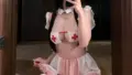 この衣装は、ナースモチーフを現代的にアレンジしたミニドレスです。ホルターネックで胸元に大きなリボンを配し、サイドには透けるメッシュパネルを入れてウエストとヒップのラインを強調します。薄手でほどよい光沢のある生地にフリルとレーストリム、赤十字パッチ付きのミニポケットと小さなブラックリボンが甘辛いアクセントを添えます。バックは大胆なバックレス仕様でタイトなシルエットがボディラインを際立たせ、付属のナースキャップとTバックでコーデが完成。撮影やパーティー、プライベートなロールプレイにおすすめの一着です。