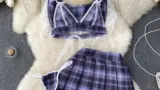 この衣装は〜深めのVネックと胸元のクロスストラップが視線を集めるベビードールタイプのランジェリーです。ミニ丈で太もも付近まで届く短めの丈感と、ボディラインに沿うタイトなシルエットが女性らしいフォルムを強調します。ノースリーブの細めショルダーにレーストリムを配し、胸元と裾には透け感のあるレース飾りがアクセント。背中は大きく開いたオープンバックでホック留め、ガーターループ風の小さな金具が遊び心を添えます。やわらかなベルベット調の光沢素材で艶っぽさと上品さを両立し、伸縮性があって着心地も良好です。付属のショーツと合わせてルームウェアや撮影、小規模なイベントや特別な夜のギフトにも最適な一着に仕上がっています。