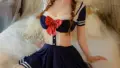 この衣装はセーラー風のコスプレセットで、ミニ丈のプリーツスカートとフリル付きのクロップドトップが特徴です。トップは肩を露出するノースリーブ寄りのデザインで、胸元に大きなリボンとくり抜きのオープンディテールが入り、フリルで縁取られた甘さと肌見せのバランスが印象的です。スカートはハイウエストで短めのプリーツラインが脚長効果を生み、軽やかに広がるシルエットが動きに合わせて揺れます。素材は薄手でやや光を抑えた生地感に見え、パステル調のチェック柄がフェミニンな印象を添えます。背面はセーラー襟とストラップ留めで着脱しやすく、ニーハイやタイツ、ぬいぐるみなどの小物と合わせると撮影映えします。この衣装はコスプレイベントや撮影、テーマパーティー、室内でのフェイス撮影やプライベートなシーンにも適した一着です。