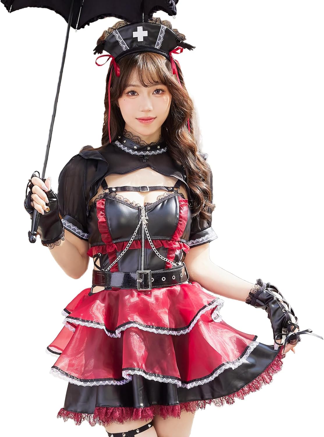 - Malymoon(マリームーン)オリジナル。ブラックレザーとフリルスカートがセクシーと可愛いを両立♪デビルナースコスチューム。