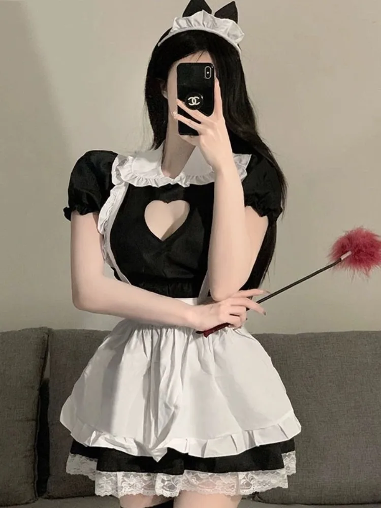 #メイド #ハートカット #パフスリーブ #フリルエプロン