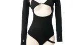 #ワンピース #バンドゥ #オープンカップ #バックレス #サイドリボン #ハイレグ #Tバック #レース #シースルー #スカラップ #サテン #フロントパネル