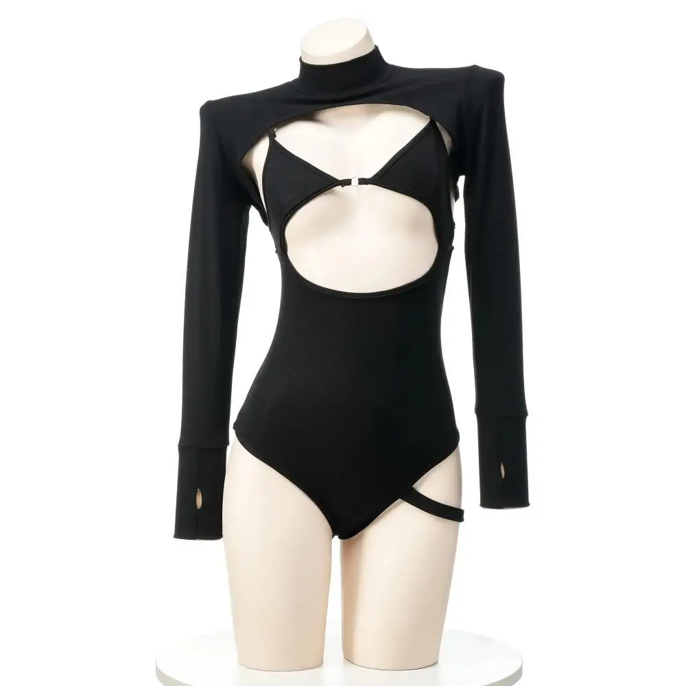 ブラックホロースイムスーツ 女性用ボディスーツ コスプレ衣装 セクシー バックレス 水着 ホットガール キャミソール ジャンプスーツ 長袖カバー ツーピース