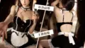 #メイド #Vネック #フレアスカート #メッシュパネル #ウエスト切替 #ストラップ #アジャスター #レース #チュール #サテン #ストレッチ #リボン #チョーカー #レーストリム
