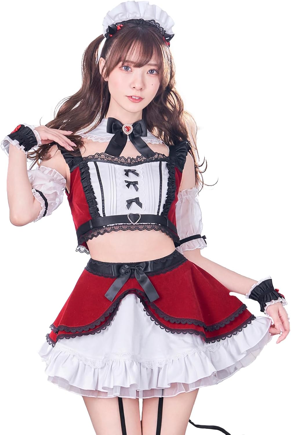 [Malymoon] コスプレ メイド ウエイトレス ゴシック ヴァンパイア 吸血鬼 レッド 赤 衣装 仮装 マリームーン 7点セット 10069