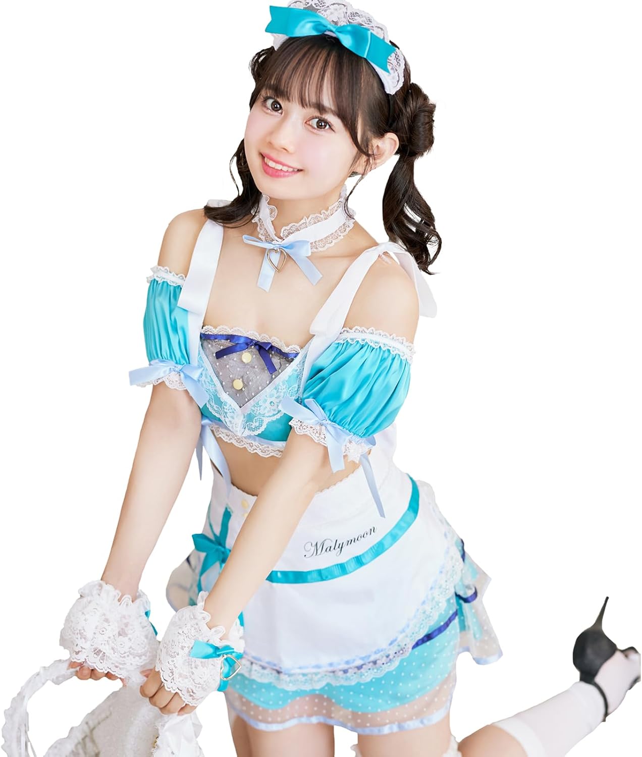 [Malymoon] コスプレ メイド ブルー レディース マリームーン ウエイトレス ホワイトデー 衣装 仮装 7点セット s9907