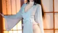 この衣装はチャイナドレスの意匠を取り入れたランジェリー風の一着です。透ける刺繍チュールに飛翔する鳥と花柄の刺繍が施され、Vカットの胸元を細いホルターストラップが美しく囲みます。背面はリボンで結ぶオープンバック、両脇は深めのサイドスリットで脚線を強調するミニ丈のタイトシルエット。縁取りのパイピングとチャイナ風のチョーカーディテールが上品さを添え、撮影や記念日、プライベートなイベントで華やかに映える一着です。着用はバックの紐で調整可能なためフィット感も得やすく、ショーツやソックスと合わせて多様なコーデが楽しめます。