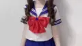 三角カップのノンワイヤーブラとハイカットショーツ、同柄のニーハイが揃ったランジェリーセットです。ブラは薄手のシースルーメッシュを用い、縦の切り替えと軽いカップ成形でバストラインを自然に拾います。肩は細いアジャスター付きストラップ、アンダーは幅広のロゴ入りウエストゴムでフィット感を出しており、ワイヤー非使用のため着心地は軽めです。ショーツはセンター縫いで腰位置を高めに見せるカット、ストッキングは伸縮性のあるナイロン混素材で光沢を持たせ、上部に同じロゴゴムを配しています。全体はミニマルなパターンとロゴアクセントでスポーティーかつ洗練された印象です。サポート力は強くないためデイリーユースやルームウェア寄りの着用が適しています。
