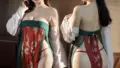 この衣装は牛柄をあしらったミニ丈のメイド系コスチュームです。フリルが効いたビスチェ風のトップは肩ストラップにギャザーが入り、胸元に大きなリボンを配して視線を集めます。ハイウエストのミニスカートは軽やかなオーバーレイヤーに小さなエプロンを重ね、裾はラッフルでふんわりとした動きを演出。トップはタイトめでウエストからスカートにかけてはフレア気味のシルエットで脚線を強調します。やや透け感のある柔らかい生地感と光沢のある縁取りが組み合わさり、同柄のニーハイで全体の統一感を持たせています。カチューシャの耳やベル付きチョーカーといった小物が遊び心を添え、撮影やコスプレイベント、パーティー、SNS用のセルフポートレートなど、視覚的なインパクトを求めるシーンにぴったりの一着です。