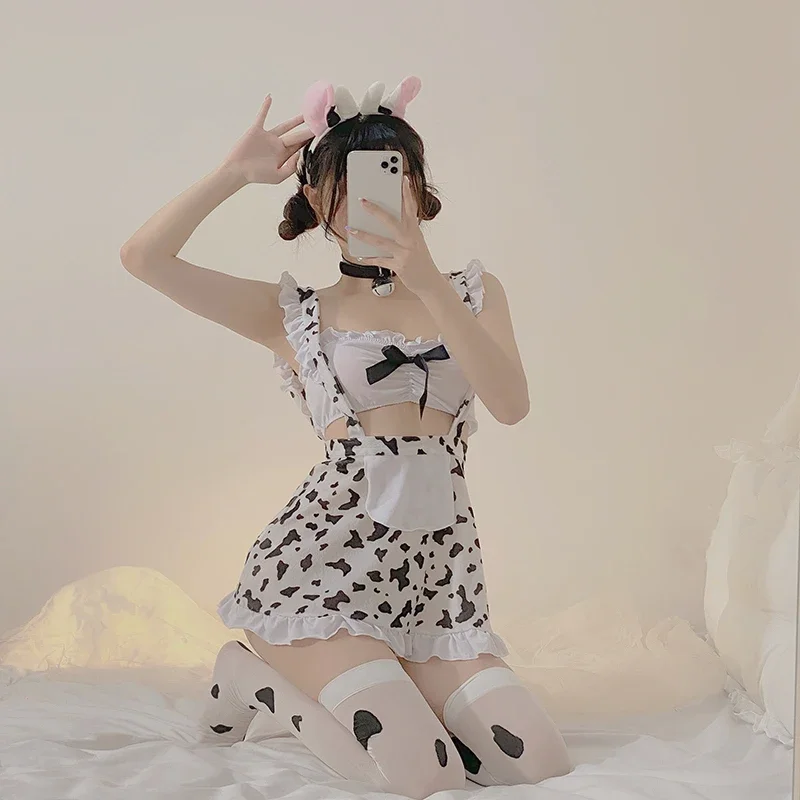商品名 | ロリータセクシーランジェリー バックレスフリル 女性用牛コスプレ衣装 プリント日本のメイド制服 誘惑下着 ミニドレス |