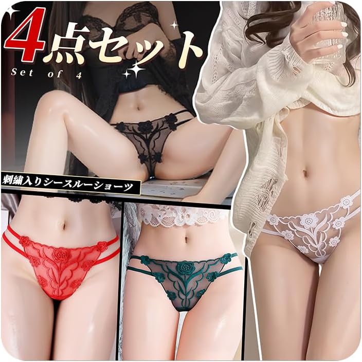 • 商品名: [三丸] ショーツ tバック パンツ レディース 女性用 セクシーランジェリー 過激 変態 sm 4点セット 刺繍入り シースルー 高伸縮性 コスプレ エロ あだるとグッズ 女性 えろい下着 ランジェリー セクシー エッチ コスチューム 大人 アダルトグッズ