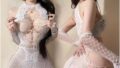 - 可愛い、エロ、シースルー、極薄、Vネック、胸の露出、尻の露出、裸の背中、レース、刺繍、サスペンダー誘惑、セクシーtバック