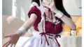 この衣装はメイドテイストをベースにしたミニ丈コスチュームで、チェック柄フレアスカートと小さなポケット風エプロンが視線を引くデザインです。胸元はシャーリング処理のチューブトップでバストラインを強調し、肩には短めのパフスリーブ付きケープレットがアクセントになっています。襟は立ち襟にリボンをあしらったチャイナ風の要素が入り、背面は大きく開いてウエストでリボン結びする仕様のため後ろ姿の抜け感も特徴です。素材感は軽やかなチェック生地に光沢のあるトップ生地とフリル・レースの縁取りが組み合わさり、リボンやヘアアクセで全体にフェミニンな装飾性をプラスしています。シルエットはウエストを強調するハイウエスト気味のミニフレアで脚長効果があり、露出は高めでセクシーさが際立つ一方、チェック柄やリボンで可愛らしさも残しているため、撮影、コスプレイベント、テーマパーティーやプライベート撮影に適した一着です。