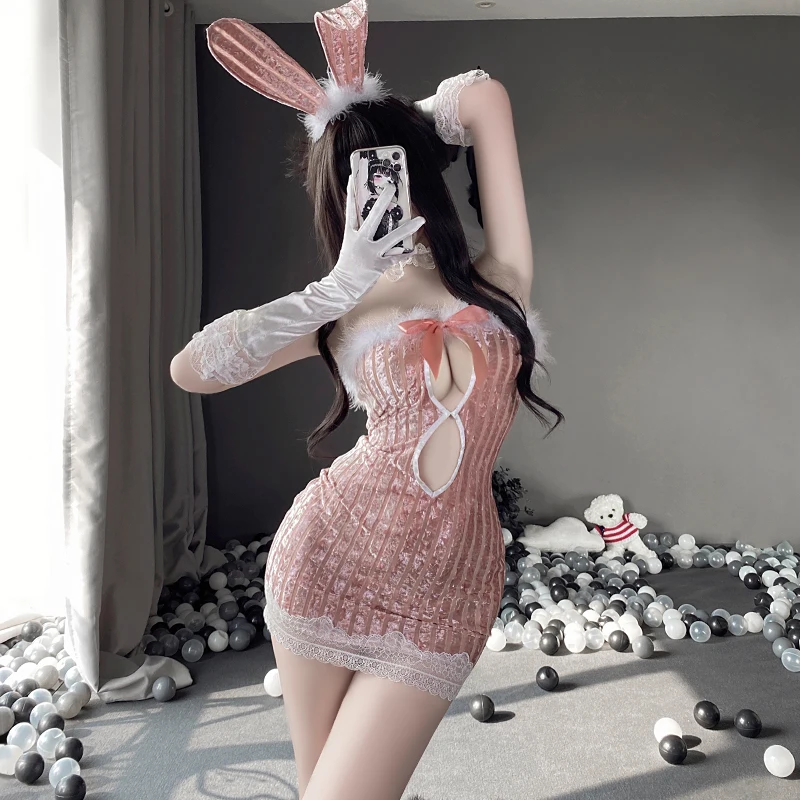 商品名 | 個人用バトラーウーマンバニーガールエロティックかわいいコスプレウサギ衣装ホローバンデージドレスレースプラッシュナイトガウンセクシーランジェリー |