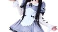 透け感のあるチュールを主体に組まれたブライダルランジェリーです。ホルターネックの細ストラップが首元から胸元へと一本で落ち、カップは薄手のシースルーにフリルで縁取られています。カップ上にはハート形のレース刺繍があしらわれ、視線を集める装飾になっています。胴はコルセット風の縦切り替えと細い芯(ボーン)でやや形を整え、ウエストはギャザーで切り替えられて下に向かって軽く広がるティアードスカートへ続きます。オフショルダーのフリルスリーブはリボンで緩く留められており、チュールヴェールとティアラがアクセサリーとして組み合わされています。全体は軽やかな透け感と多層のフリルで、可憐さと飾り立てる構造が両立したデザインです。