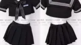 この衣装は教壇を連想させる“先生風”モチーフを、大胆なカッティングで再解釈したワンピースです。胸元は深いスクープネックと両肩のカットアウト(ビブ風白パネル)でハルターネックのような印象を作り、首元には細いネクタイをチョーカーのように合わせる構成です。ボディは薄手のストレッチジャージで全体をタイトに包み、胴部に配した金ボタンが軍服的なアクセントになっています。袖は七分丈で白いカフスをあしらい、裾は前後に細長いテールを残しつつ両脇が股上まで大きく開くハイレグ/サイドスリット設計です。モデル着用写真ではハイカットのショーツやシアーなタイツ(開檔タイプ)と組み合わせており、ドレスの伸縮性と肌のラインがそのまま見えるつくりになっています。マネキン画像では前後のバランスやスリットの位置が確認でき、別売りのオープンクロッチタイツとのセット提案も見られます。