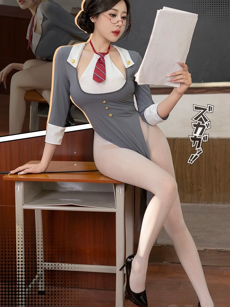 #教師 #ハイレグ #サイドスリット #カットアウト #スクープネック #ビブ #七分袖 #ロングテール #ストレッチ #ナイロン #スパンデックス #シアー #タイツ #オープンクロッチ #ネクタイ #金ボタン #白襟 #カフス