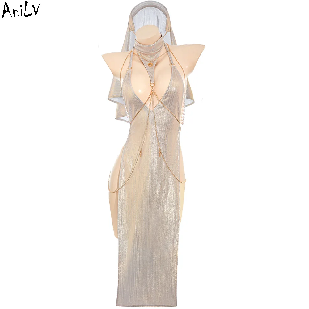 商品名 AniLV 女性用 女神風 金メッキチェーン ドレス・修道女風コスプレ衣装セット