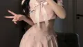 制服風ミニワンピ — リボン襟とコルセットで腰を強調